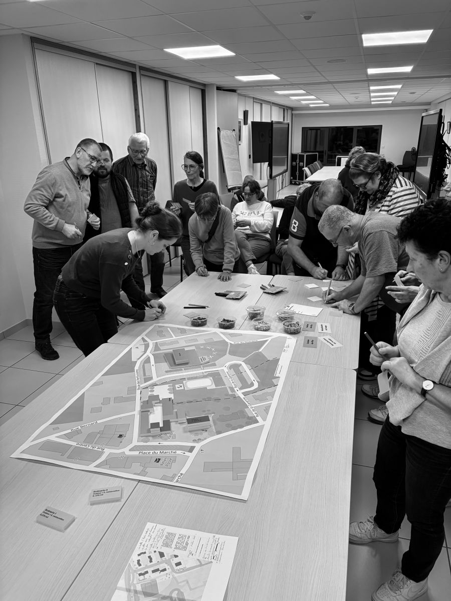 Cet atelier a permis de croiser les regards et les expériences : celles des élus,des enseignants, des habitants ou encore des associations locales. En confrontant les points de vue et en manipulant concrètement les scénarios proposés, les participants ont contribué à affiner la compréhension des enjeux et à orienter les choix programmatiques du projet.
