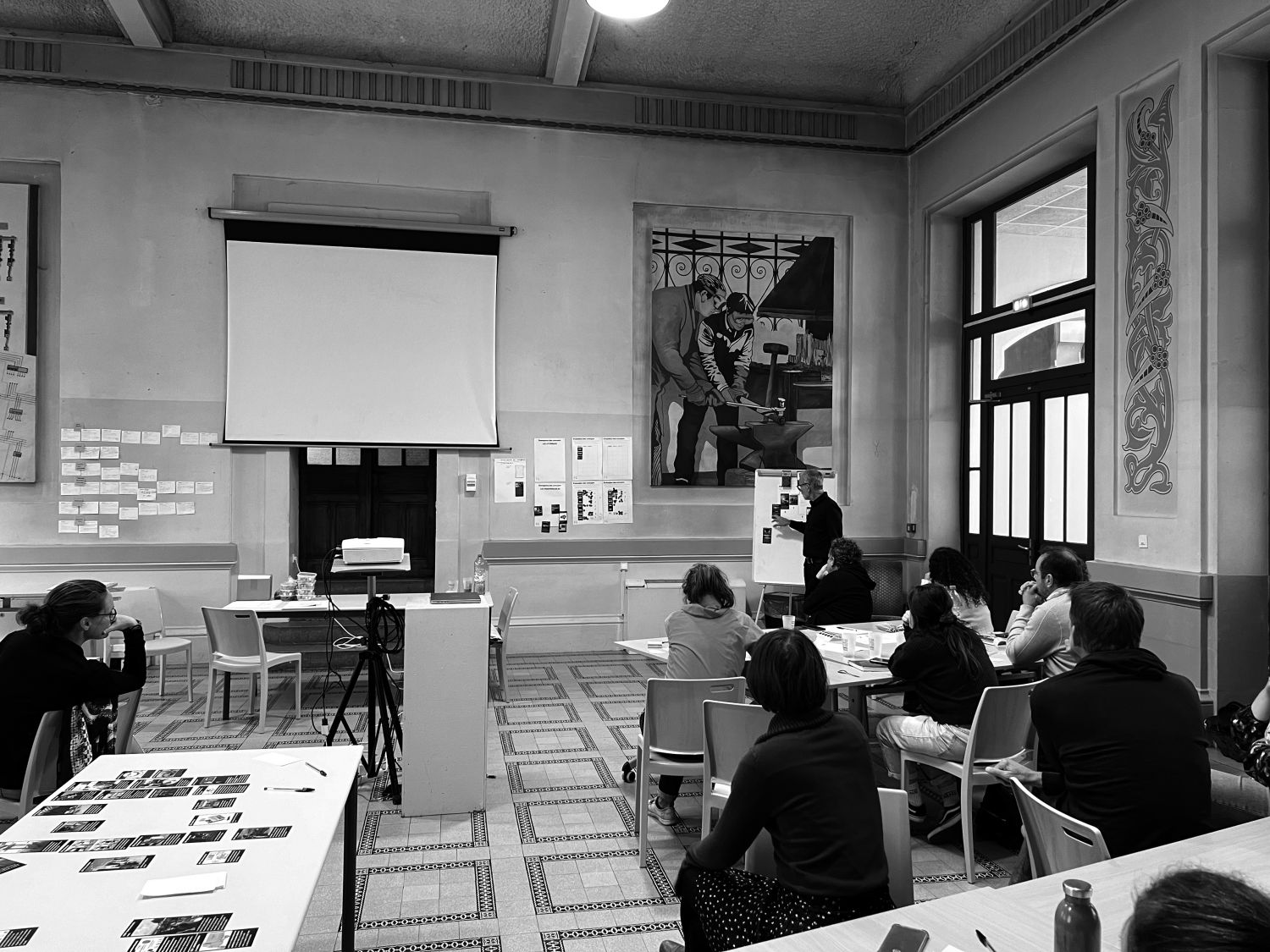 En collaboration avec ATEAM Architectes, nous sommes missionnés pour concevoir, avec les usagers, le projet d’aménagement de la nouvelle Maison des Associations (MDA) de Chambéry. Lieu symbolique de la ville, la MDA était Initialement le premier hôpital de la ville avant de devenir un collège professionnel, puis une antenne du lycée Vaugelas. Depuis 1993, elle est devenue un centre clé pour les associations locales, offrant une variété d'espaces adaptés aux besoins des associations. L'objectif est de repenser ces espaces partagés, tels que les tiers-lieux, les espaces de coworking et la cantine participative sociale et solidaire, afin de renforcer la convivialité et l’inclusivité au sein de la MDA. Pour définir les usages de ces différents lieux, nous avons organisé un marathon participatif de deux jours avec les collaborateurs de la MDA, favorisant une réflexion collective et ancrée dans les besoins réels. Ce projet est actuellement en cours et sera livré en 2026.