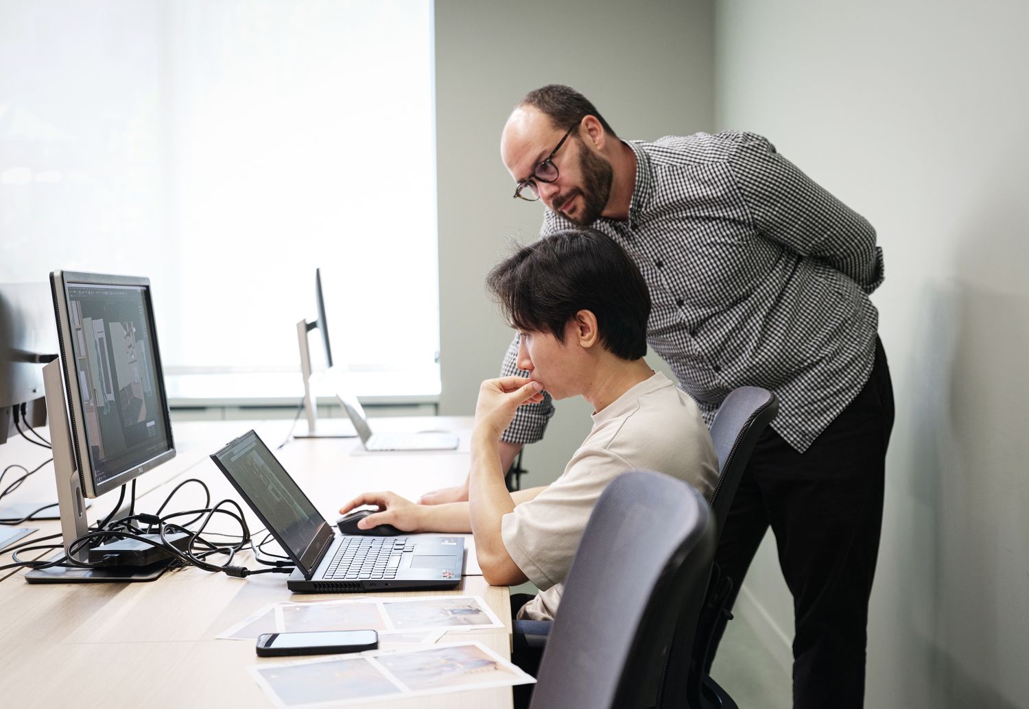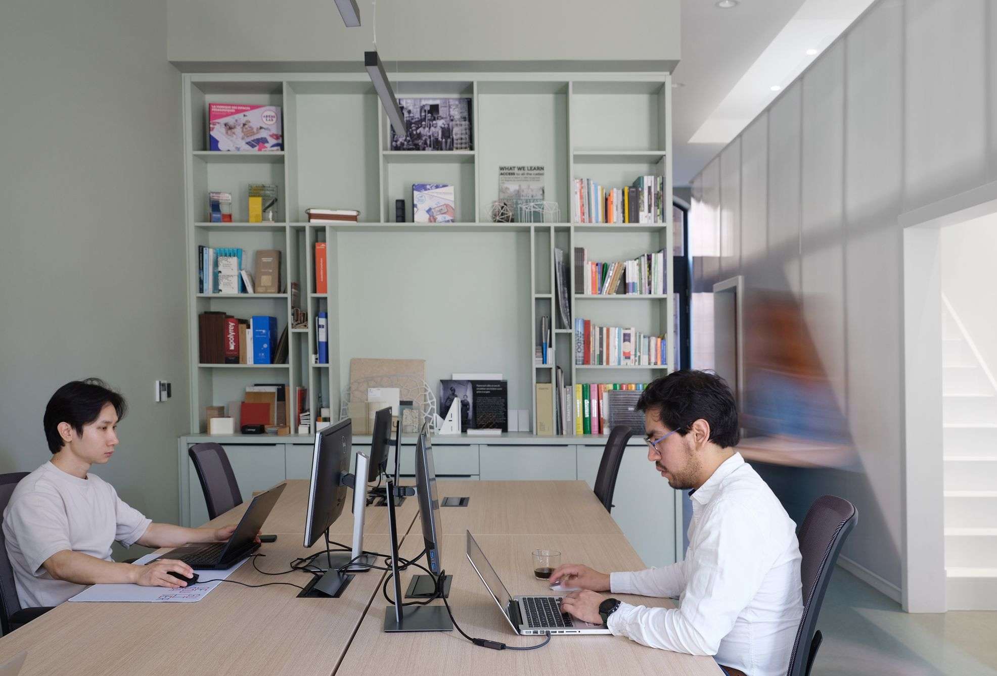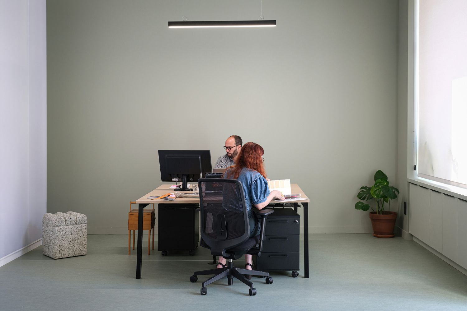 La matériauthèque, conçue comme un lieu d’exploration sensorielle, permet de manipuler les textures, les couleurs et les matériaux, essentiels à notre processus de conception. À proximité, l’atelier de maquettage offre un cadre dédié à l’expérimentation formelle, prolongeant le geste du dessin dans la tridimensionnalité. Une salle de réunion accueille nos partenaires dans un environnement propice à la discussion et à la co-construction, tandis qu’une space de visio, isolé, permet de s’entretenir à distance sans perturber le travail des autres.