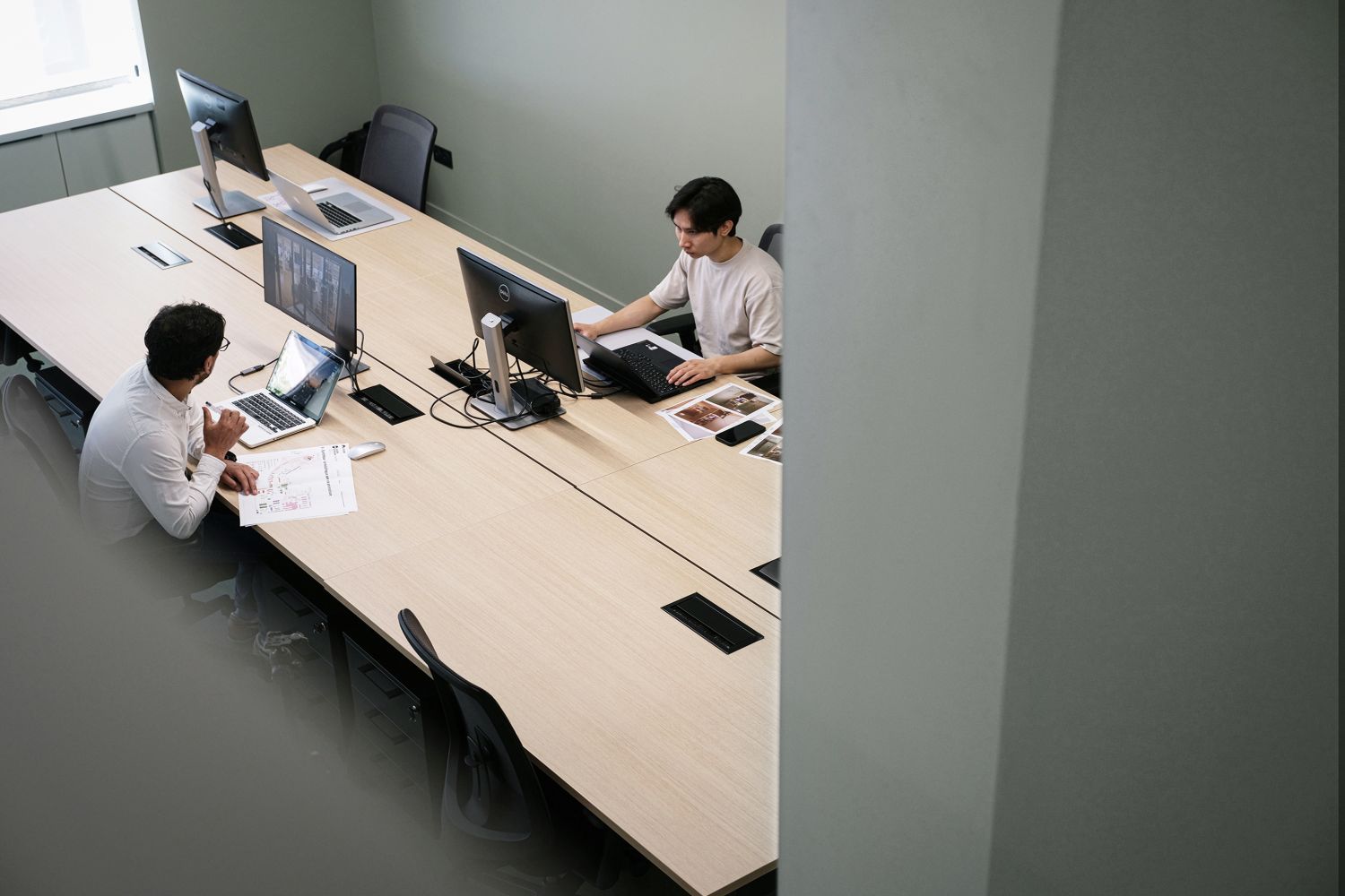 L’ambiance générale des bureaux de l’agence DE SOUSA repose sur une esthétique sobre et épurée, pensée pour favoriser la concentration, le calme et la stimulation de la créativité. Ce parti pris se traduit par l’utilisation de matériaux durables, une mise en valeur de la lumière naturelle et des agencements flexibles, qui composent un environnement de travail à la fois fonctionnel,chaleureux et inspirant.