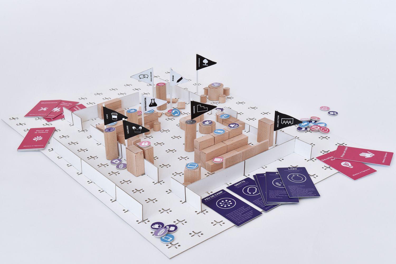 ArchiLAB© est un jeu de plateau conçu pour aider les usagers (qu’ils soient salariés d’une entreprise, d’une collectivité, enseignants, élèves, parents, services techniques, etc.) à imaginer ensemble les futurs espaces de leur établissement.