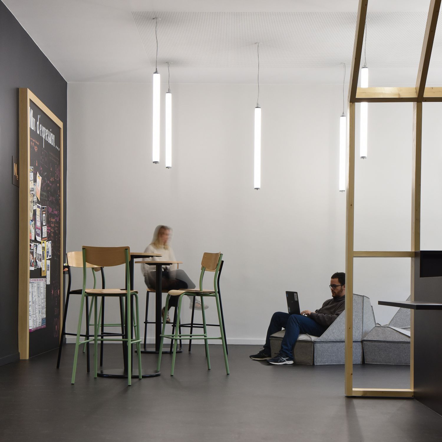 C’est dans ce contexte qu’est né Carbon Connect©,un tiers-lieu emblématique implanté au cœur de l’École des Mines de Saint-Étienne. Pensé comme un espace pivot entre tradition et innovation, il incarne la nouvelle dynamique pédagogique et identitaire de l’école. Ce lieu hybride, à la croisée des usages, des générations et des disciplines, a pour vocation de favoriser les échanges, la convivialité et la collaboration entre élèves,enseignants, chercheurs et partenaires extérieurs.
