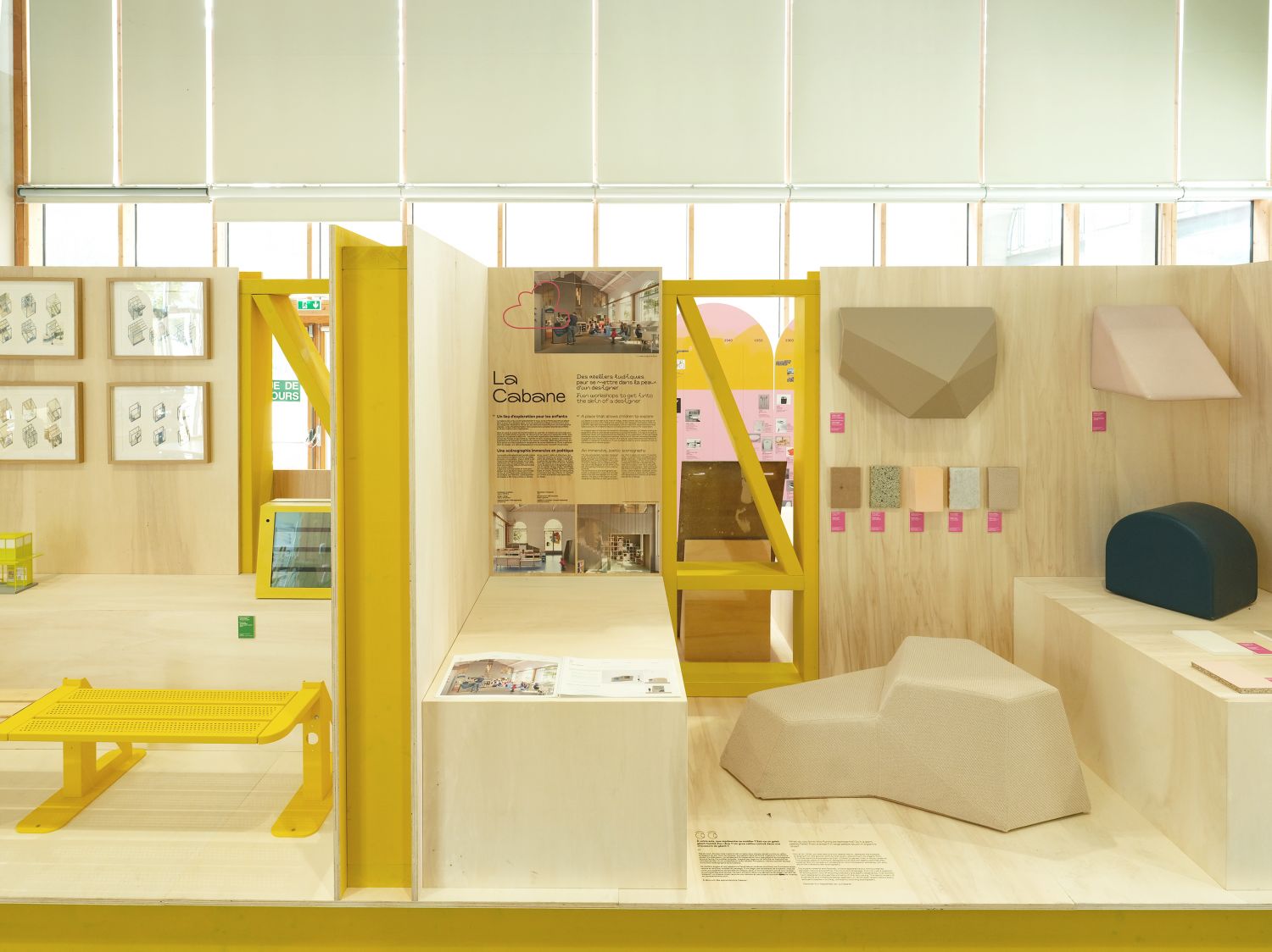 Cabane du design : Pensée pour les enfants de 3 à 10 ans, la Cabane s’est transformée en un lieu ludique de sensibilisation, repensée par notre agence DE SOUSA (avec Atelier des Vergers). Le parcours y mêle prototypes fonctionnels, esquisses interactives et dispositifs sensoriels, complétés également par le fil « Le saviez‑vous ? » —pour transmettre le design en jouant.