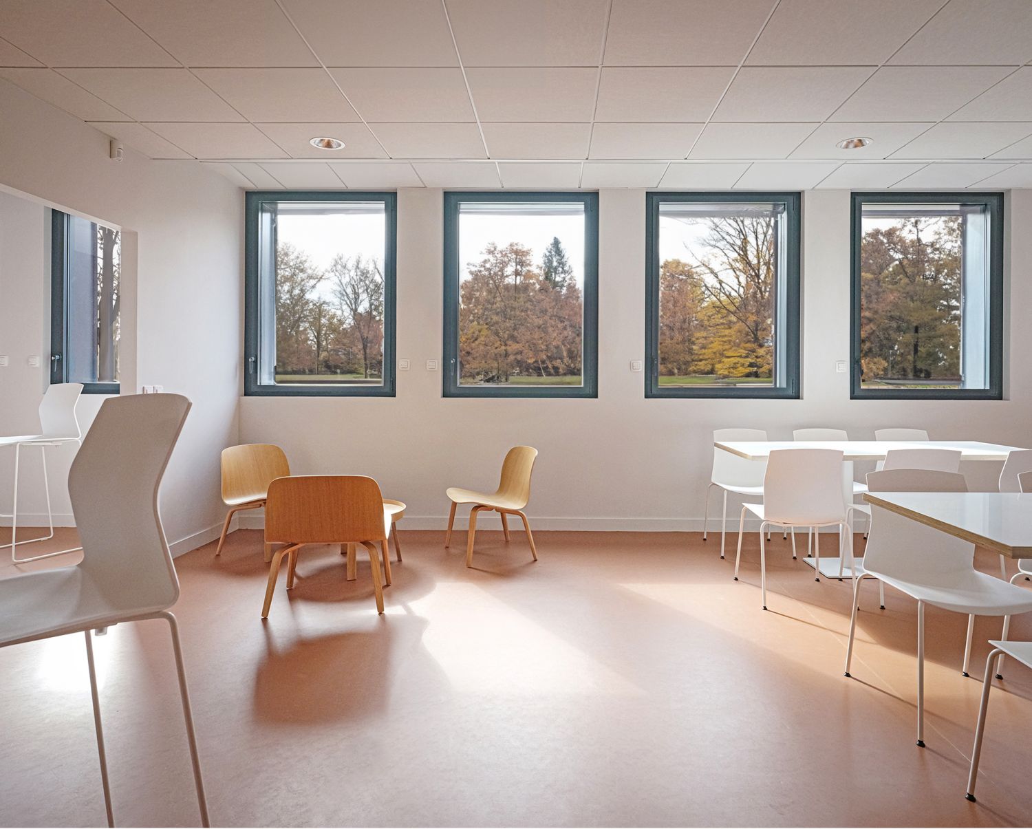 Cette démarche a permis de structurer le projet autour de quatre grands axes : accueillir, se réunir, travailler et entretenir. Ces thématiques ont guidé l’organisation des espaces, favorisant une circulation fluide, des interactions spontanées et une appropriation naturelle des lieux par les usagers.