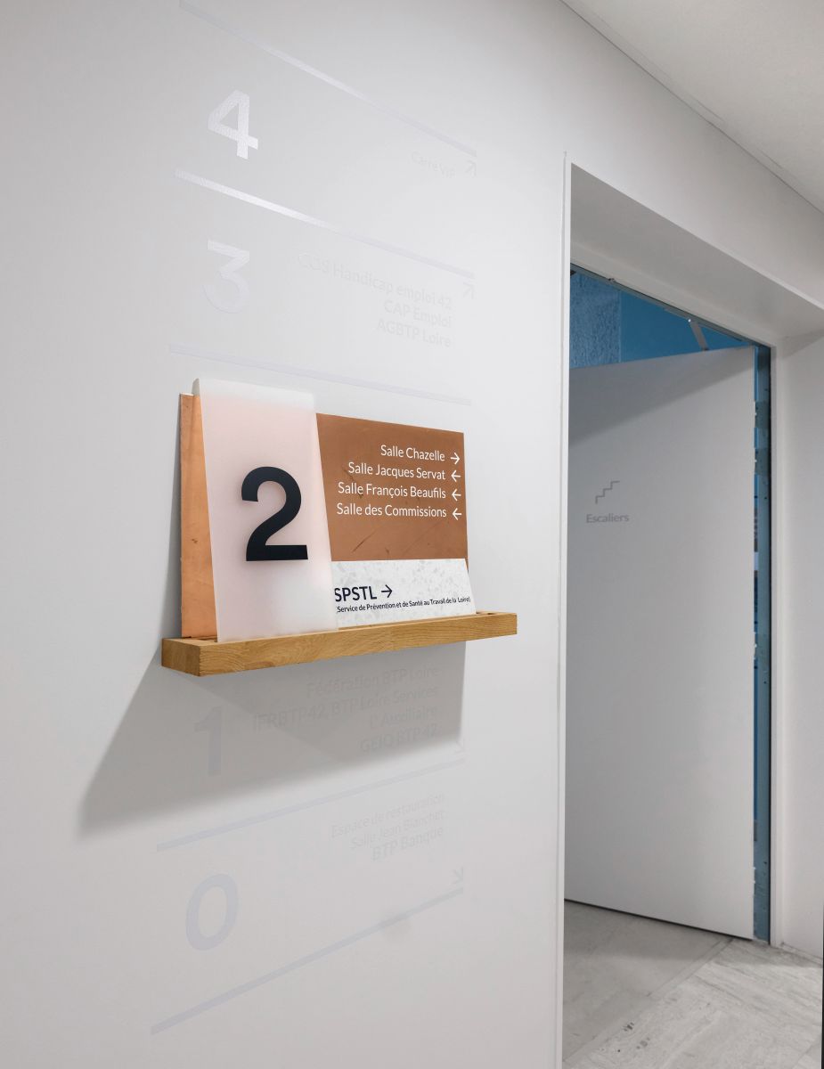 Un soin particulier a été apporté à la signalétique, conçue comme un prolongement de l’identité du lieu.