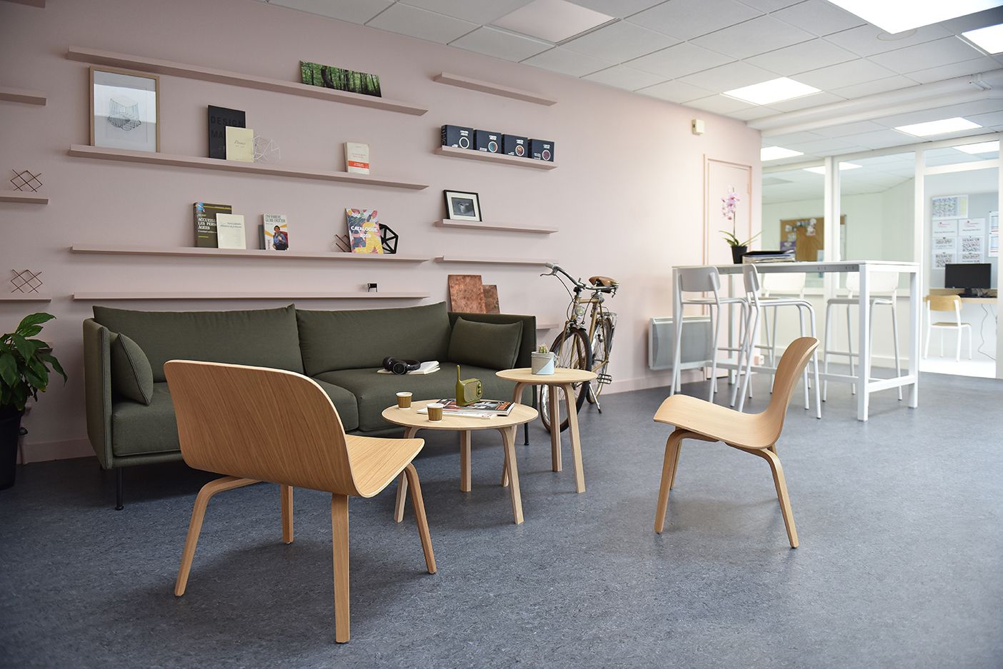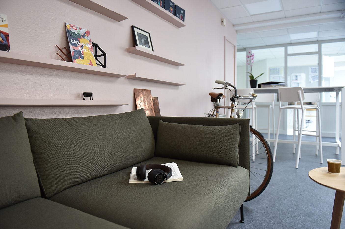 Cet espace est conçu comme un "entre-deux", un lieu où se croisent à la fois la dimension sociale et la nécessité de relaxation, tout en soutenant la solidarité entre les membres de l’équipe.