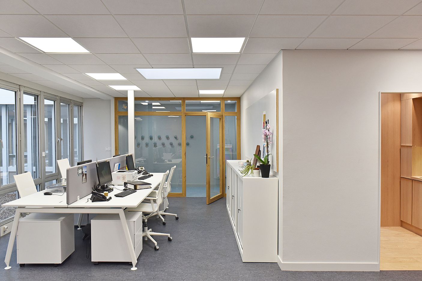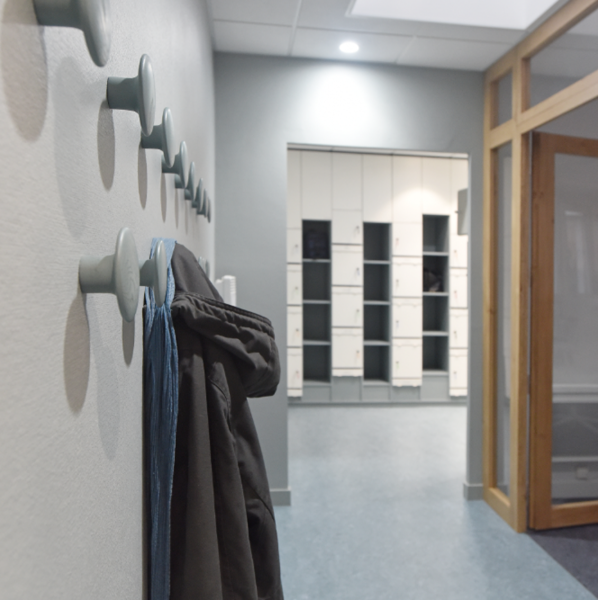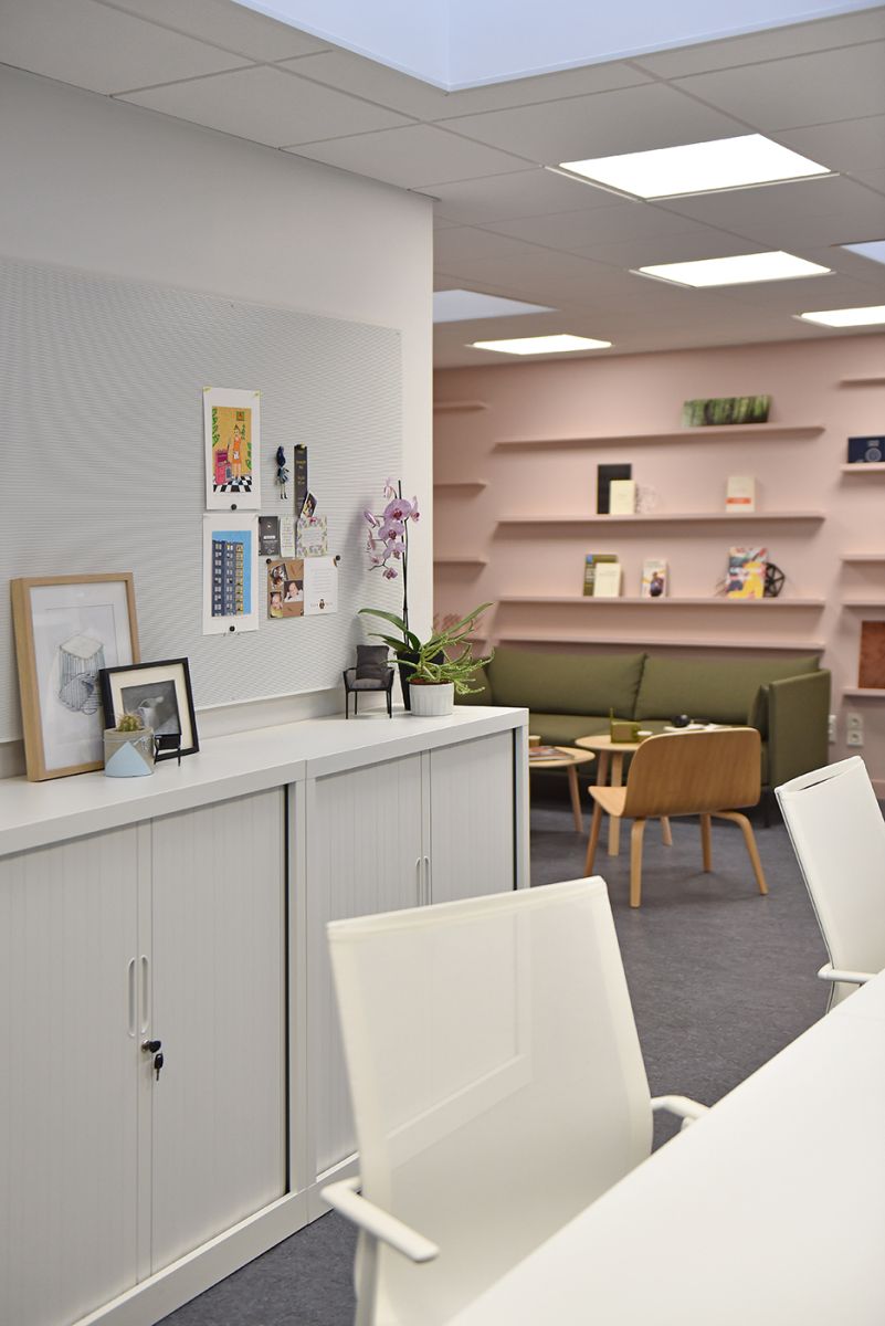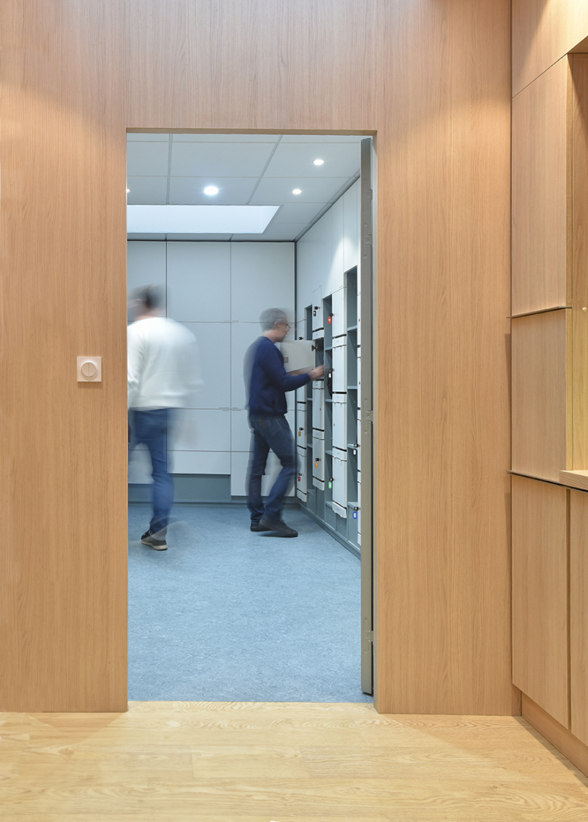 En complément de cet espace de décompression, des zones fonctionnelles ont été pensées pour répondre aux besoins organisationnels de l’équipe. Le centre d’appel, la salle de saisie pour les reporting, et un vestiaire ont été intégrés afin de garantir une organisation fluide, tout en répondant aux impératifs logistiques des équipes de soins. Ce réaménagement prend donc en compte à la fois les besoins pratiques des soignants et leur bien-être psychologique, créant ainsi un environnement plus équilibré et humain.